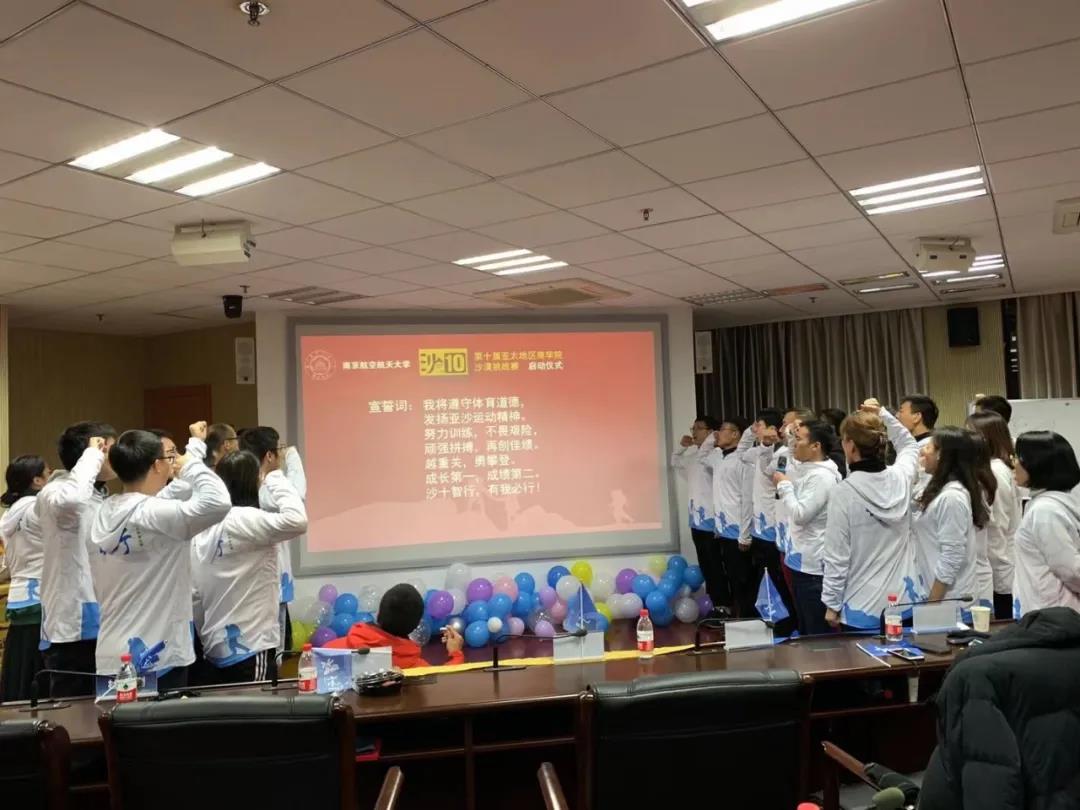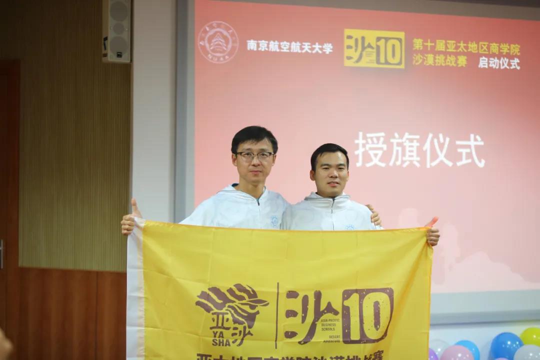 在亚沙组委会代表、南航MBA中心老师、南航沙9与沙8队长、南航MBA校友以及全体预备队员们的见证下,南航智行沙10队长陈权全郑重接过队旗。南航沙十正式启动!