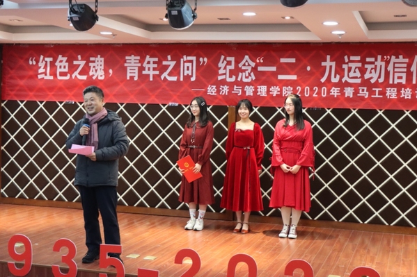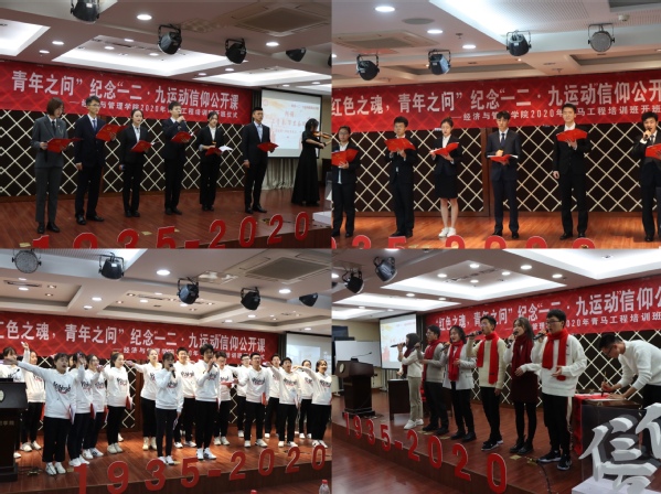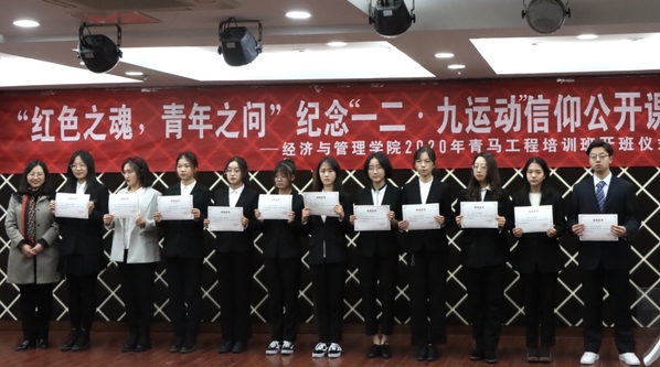 12月9日晚,BB贝博艾弗森官方网站“红色之魂,青年之问”纪念“一二•九运动”信仰公开课暨2020年青马工程培训班开班仪式于经管楼A0305成功举办。BB贝博艾弗森官方网站党委书记焦宏图,党委副书记涂志宏,经济系教授江可申,经管“红石榴”工作坊指导老师、学生处教师玛依拉•赛依力,团委书记刘小杨,以及各年级辅导员和二百余位学员出席了本次活动。