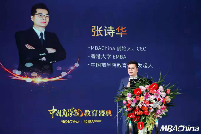 MBAChina创始人、香港科技大学EMBA、中国商学院教育盛典发起人张诗华作为主办方致辞。