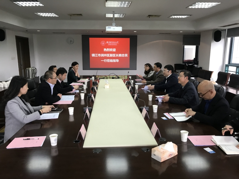 4月12日下午,镇江市润州区副区长赖忠民、组织部常务副局长徐文军、科技局局长江金保、副局长孙山、副局长庄品(南航经管院老师)、官塘桥街道办事处副主任金恺一行到BB贝博艾弗森官方网站综合楼洽谈南航与镇江润州区合作事宜,BB贝博艾弗森官方网站科研院高新处副处长孔祥浩、BB贝博艾弗森官方网站副院长王子龙、技术转移办公室主任马一殴、MBA教育中心执行主任杜刚、招生与品牌推广办公室主任徐倩、技术转移办公室项目主管韩远参与会议。