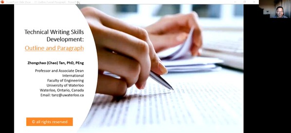 5月11日-6月1日每周二上午,加拿大滑铁卢大学教授Zhongchao Tan受学院智能决策与风险分析研究所邀请,在腾讯会议开设了“Academic Writing for Engineering Publication: Guide for Non-native English Speakers”短期课程。贝博官网教授徐海燕等教师及众多硕、博研究生线上参加了Zhongchao Tan讲授的短期课程,本次短期课程由徐海燕主持。