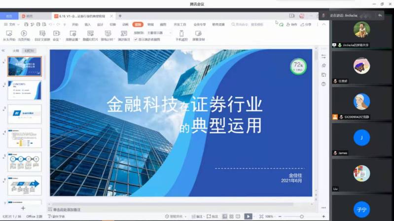 6月16日晚上,华创证券产业金融部执行总经理金佳佳应BB贝博艾弗森官方网站信息管理与电子商务研究所的邀请,通过腾讯会议作了“证券行业的金融科技问题分析”报告,贝博官网教授米传民以及诸多学生聆听了此次报告,本次报告由米传民主持。