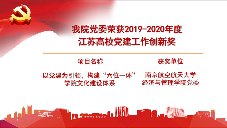 经学院申报、学校初评推荐(全校共推荐2项)、江苏省委教育工委评选,贝博官网党委“以党建为引领,构建‘六位一体’学院文化建设体系”荣获2019-2020年度江苏高校党建工作创新奖。学院党委将再接再厉,不断创新基层党建工作理念与实践,努力提升党建工作质量水平,推动学院在新发展阶段的高质量发展。