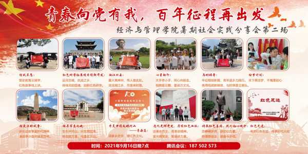 9月16日晚,BB贝博艾弗森官方网站“青春向党有我,百年征程再出发”暑期社会实践交流会红色专场顺利开展。来自经管学院的12支献礼建党百年实践团队线上展示了他们的实践成果,践行“请党放心、强国有我”的时代潮音,发出开创未来的青春誓言。产出“微团课”“微党课”10余堂,获得了中国共青团杂志的报道和地方政府的支持与认可。BB贝博艾弗森官方网站团委书记刘小杨及实践团队成员参加此次交流会。