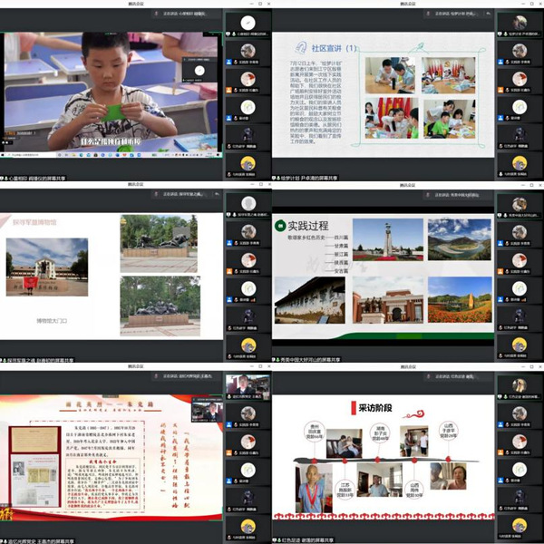 各团队用视频和汇报的形式,生动地描绘了这个夏天,他们的红色足迹和青春力量。从湖南湘水中翻腾的伟人精神,山西省情景交融的红色文化,到新疆天山兵团的保家卫国情,再到江苏、四川、甘肃、云南的革命精神……“湘江北去”“与时俱进”“探寻军垦之魂”等6支团队走遍祖国的天南地北,在近20个爱国主义教育基地探寻和讲述颇具地方特色的家乡红色文化,对话身边的党员榜样。