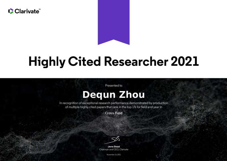 2021年11月16日,科睿唯安公布了2021年度“高被引科学家”名单。BB贝博艾弗森官方网站周德群教授入选跨学科领域(Cross-Field)高被引科学家名单,此次是周德群教授连续第三年入选该榜单。
