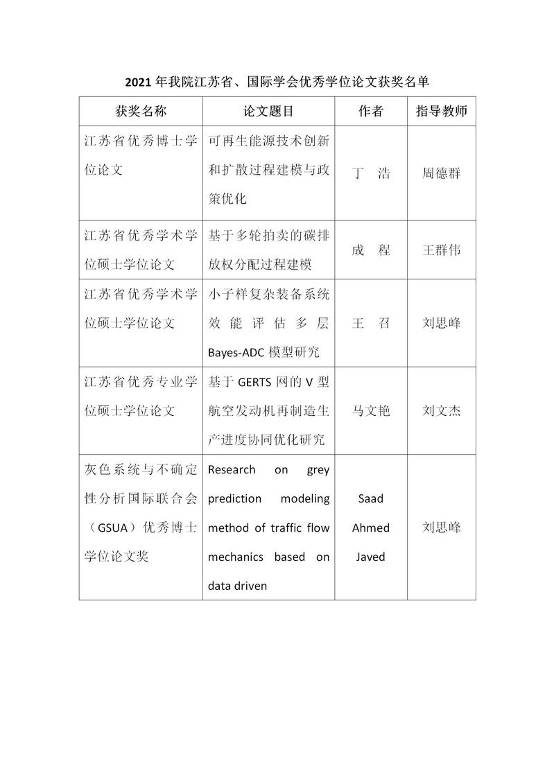 近日,2021年江苏省优秀博士硕士学位论文、国际学会优秀学位论文获奖名单陆续公布。贝博官网师生表现突出,斩获2021年度江苏省优秀博士学位论文1篇、江苏省优秀学术学位硕士学位论文2篇、江苏省优秀专业学位硕士学位论文1篇、灰色系统与不确定性分析国际联合会优秀博士学位论文1篇。