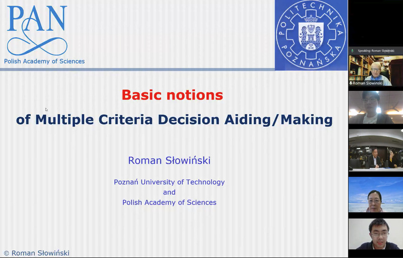为深度推进国际交流和师生全面发展,11月5日-12月4日,波兰科学院副院长、波兰科学院院士、欧洲科学院院士、IEEE院士、国际粗糙集学会院士、波兰信息科学院主席、《European Journal of Operational Research》主编Roman Słowiński教授受学院智能决策与风险分析研究所邀请,在腾讯会议作题为“Basic notions of Multiple Criteria Decision Aiding / Making”的系列讲座。国际合作处处长张卓、国际合作处副处长沈敏、BB贝博艾弗森官方网站教授徐海燕出席本次活动。