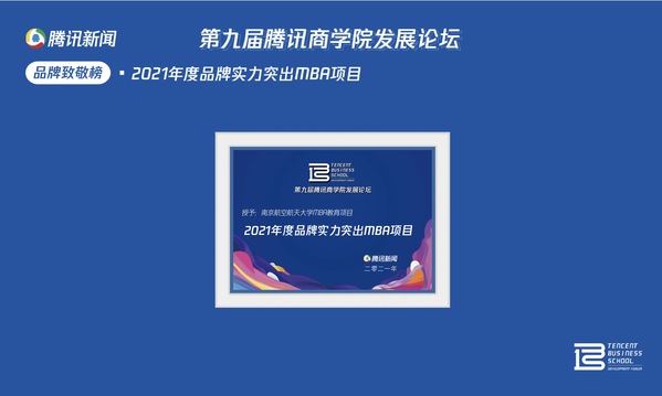 同时,为进一步传递行业前沿思想,腾讯商学院致敬商科教育领域内的优秀头部力量,论坛现场还颁发了2021年度中国商科教育影响力人物、2021年度品牌影响力商学院、2021年度品牌实力突出MBA项目等多类荣誉奖项。BB贝博艾弗森官方网站荣获“2021年度品牌影响力商学院”,BB贝博艾弗森官方网站MBA教育项目荣获“2021年度品牌实力突出MBA项目”。