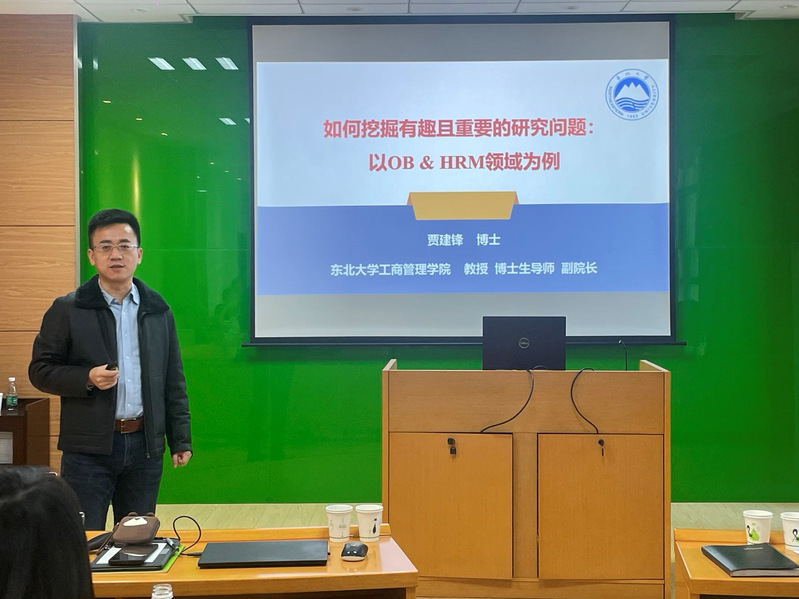 12月3日下午,东北大学工商管理学院教授贾建锋应BB贝博艾弗森官方网站人力资源管理研究所和江苏省人力资源发展研究基地的邀请,在BB贝博艾弗森官方网站702会议室作了题为“如何挖掘有趣且重要的研究问题:以OB&HRM领域为例”的报告。本次报告由教授胡恩华主持,王建玲、王凌云、宋莲莲、李媛、蔡静雯等教师及部分硕、博士生参加本次报告。