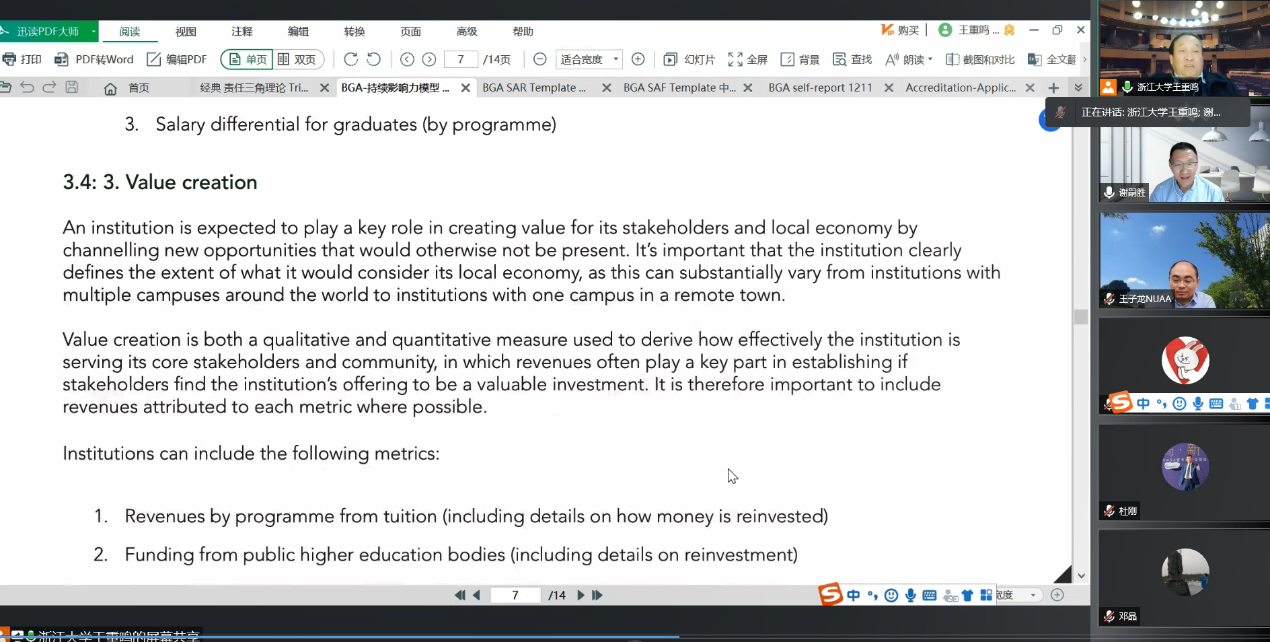 12月21日晚,国际工商管理认证协会(AMBA)中国区总负责人、浙江大学文科资深教授、浙江大学全球创业研究中心主任王重鸣教授应邀指导贝博官网BGA认证工作。因疫情防控需要,本次会议在线上召开。BB贝博艾弗森官方网站院长周德群、党委书记苏州、学院副院长王子龙、邓晶、谢乃明、院长助理兼认证中心主任谢嗣胜、MBA教育中心执行主任杜刚以及相关专业老师参加会议。