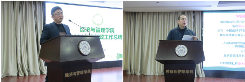 院党委书记苏州代表学院党委从政治建设、思想建设、组织建设、作风建设、纪律建设、推进反腐败工作以及落实巡视巡察整改工作等方面向全院教职工进行了全面从严治党工作述职。院长周德群从学科建设、队伍建设、人才培养、科学研究、国际合作、教育培训等方面对全院2021年度行政工作做了全面总结,并报告了学院年度财务收支情况。院领导班子成员分别围绕年度工作目标及岗位职责,对照个人思想政治和理论学习、落实“一岗双责”、完成重点工作、存在问题和改进措施等情况进行了全面述职。
