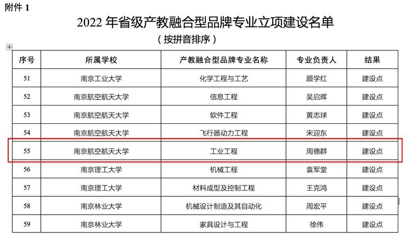 2022年5月5日,江苏省教育厅公布了2022年省级产教融合型品牌专业评审结果,贝博官网工业工程专业成功入选2022省级产教融合型品牌专业建设点,成为全校4个获批建设点的专业之一。