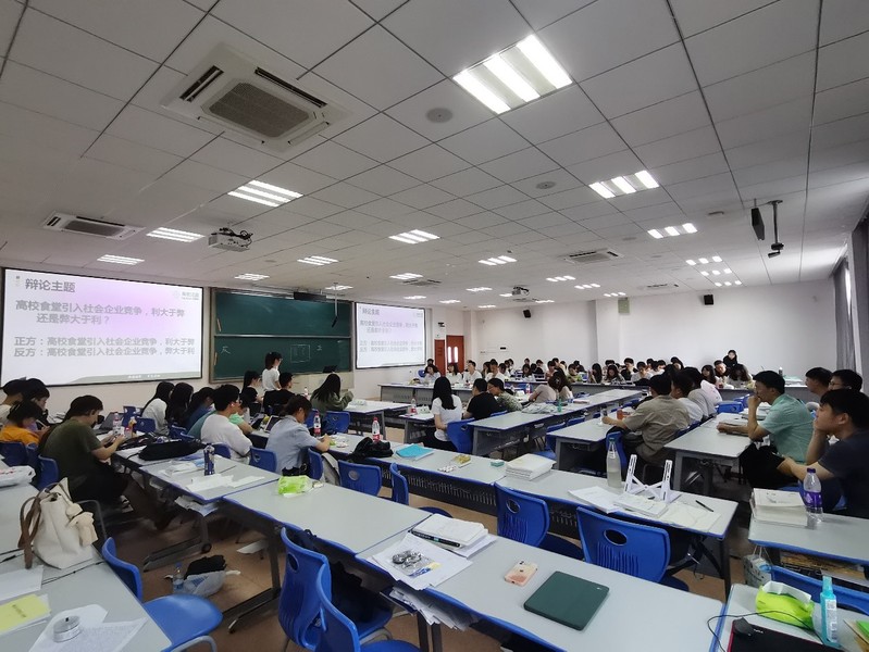 本次辩论赛围绕我国社会发展面临的重大现实问题和系统发展环境,共设置了“中国经济高质量可持续发展应以国内循环为主,还是以国外循环为主”、“经济发展和环境保护何者优先”、“疫情会推动or阻碍社会发展”、“网络实名制是否有利于公众讨论”、“高校食堂引入社会企业竞争,利大于弊还是弊大于利”五个辩题。每组辩题正反八位辩手从系统性思维、全面性、影响关联性等多个视角,将辩题放眼于时代,落脚于中国现实,依托课程知识与现实问题的有机结合,进行了一场场精彩的语言交锋。
