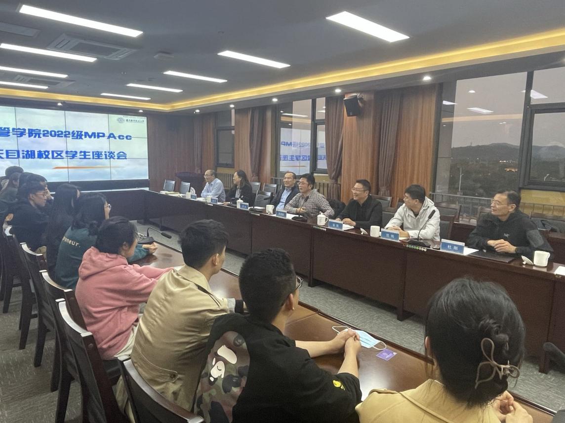 天目湖校区2022级MPAcc专业十八名学生代表们结合目前的学习生活都积极发言、畅所欲言反馈情况,分享了来到南航后的学习生活感悟。表达了入学一个月以来的学习生活感受和对未来两年半的学习生涯规划与目标。同学们反映了平时学习生活中亲身遇到的实际问题,提出了一些建设性的意见和建议。各位领导和老师认真听取了学生发言,并逐一作出详细答复。表示会积极协调学校各部门,认真考虑学生的意见和建议。