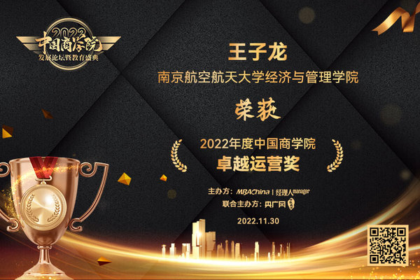 BB贝博艾弗森官方网站副院长王子龙教授荣膺“中国商学院卓越运营奖”。