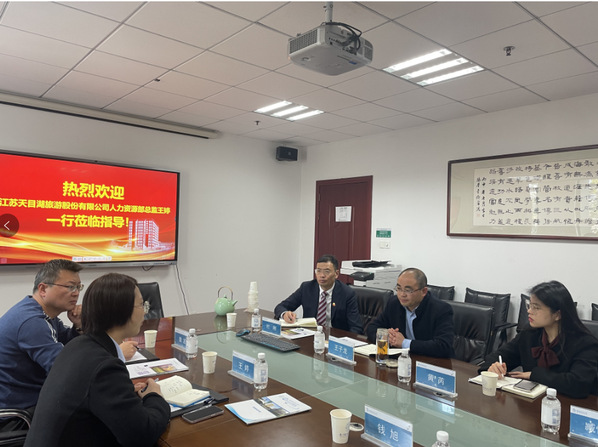 3月2日上午,江苏天目湖旅游股份有限公司人力资源部总监王婷、人力资源部培训主管钱旭到访贝博官网开展合作交流,校保卫处副处长魏波,BB贝博艾弗森官方网站副院长王子龙,MBA教育中心执行主任杜刚等参加了座谈交流。