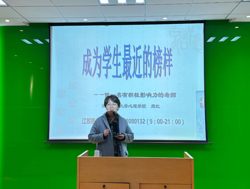 为更好地贯彻落实学校“谈心谈话关爱月”工作要求,3月23日下午,BB贝博艾弗森官方网站邀请南京师范大学心理学院党委书记周红老师做题为“做一名有积极影响力的老师”专题心理讲座。学院党委书记苏州、党委副书记胡苹、三十余位青年教师和全体专兼职辅导员到场参加,讲座由学院党委副书记胡苹主持。