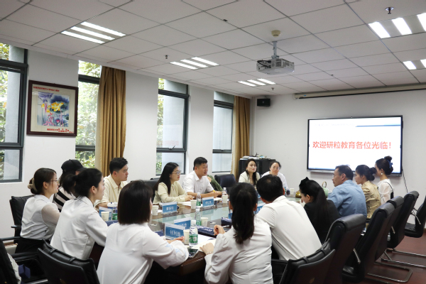 杜刚代表MBA教育中心对研粒教育朱驰州一行的到访表示热烈欢迎,并介绍了学校和学院的历史发展,及MBA/MEM/MPAcc项目特色优势、招生条件等。